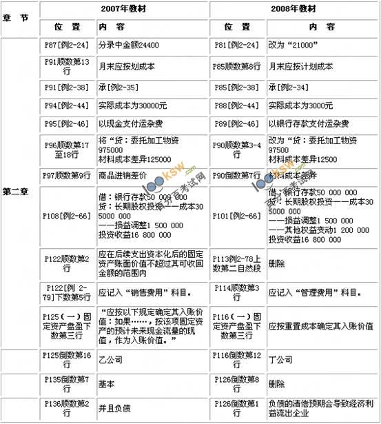 2007、08年《初級會計實務》教材變化對比(第二章)