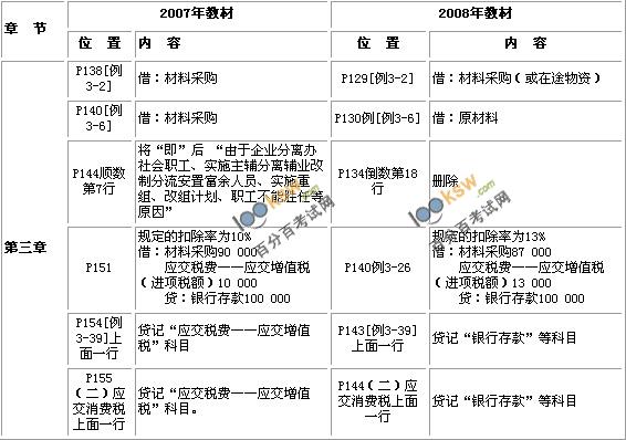 2007、08年《初級會計實務》教材變化對比(第三章)