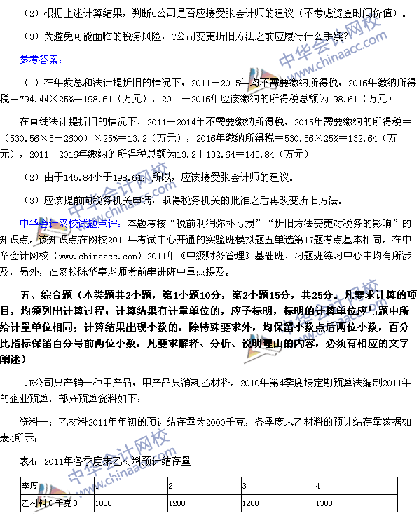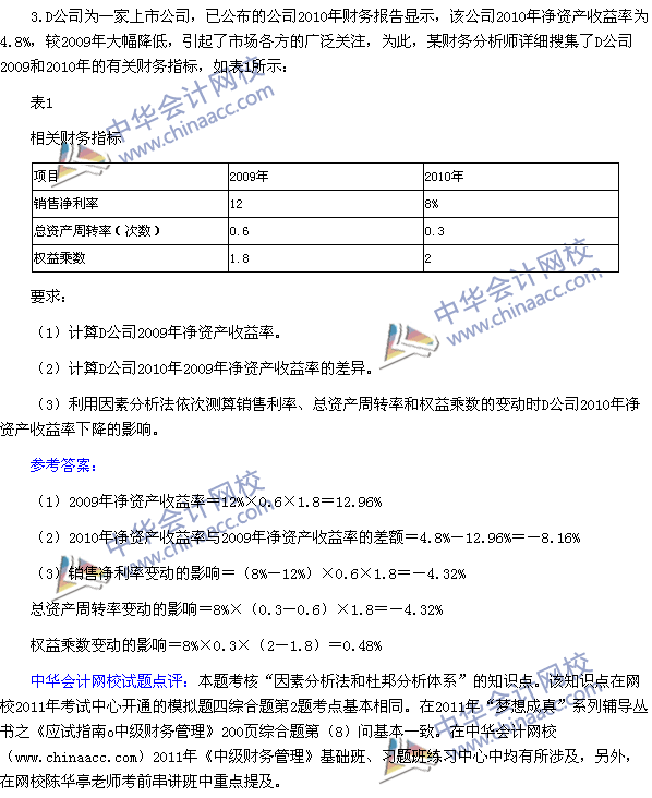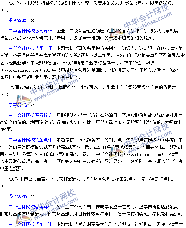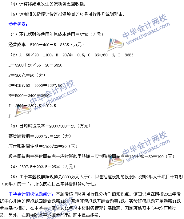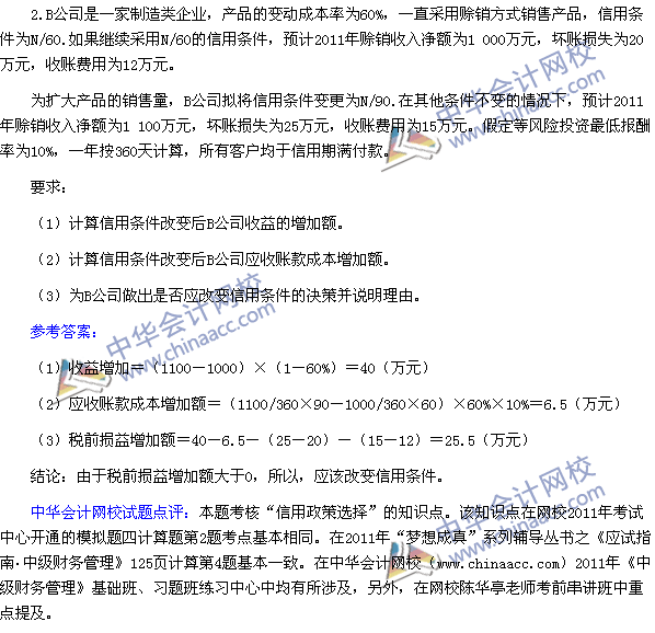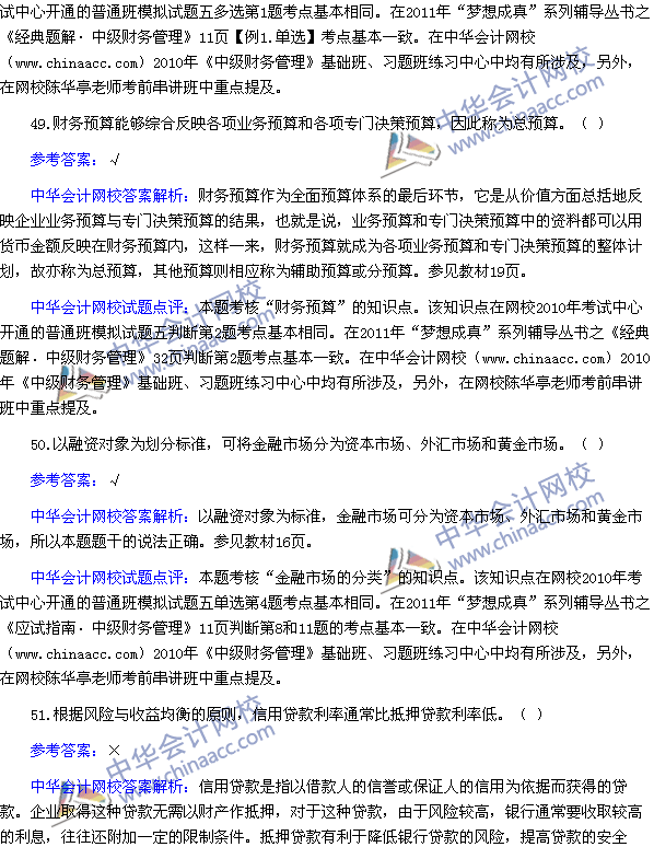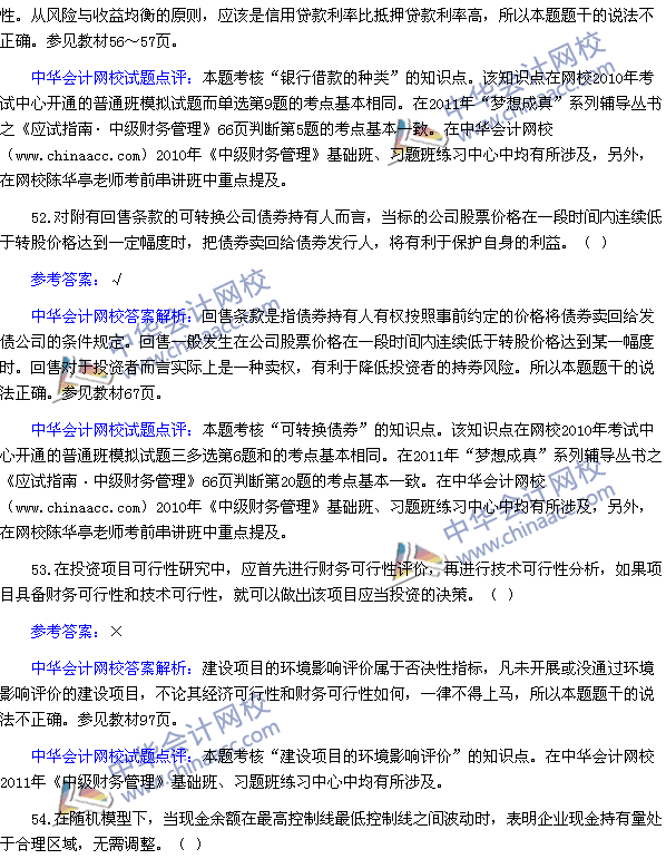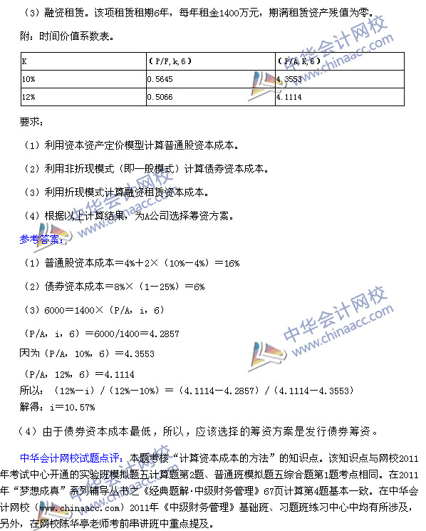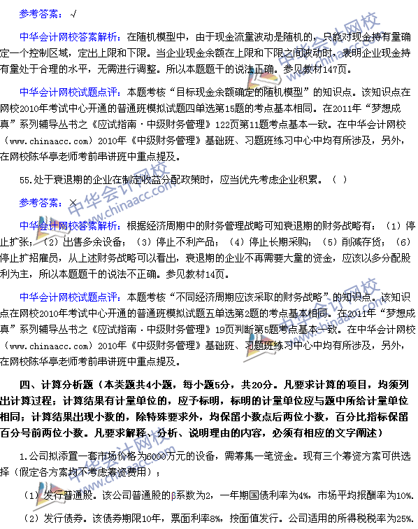 2011年中級會計職稱考試《財務管理》考試題目及參考答案