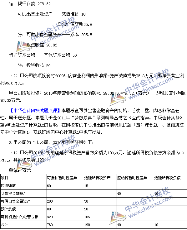 2011年中級會計職稱考試《中級會計實務》考試題目及參考答案