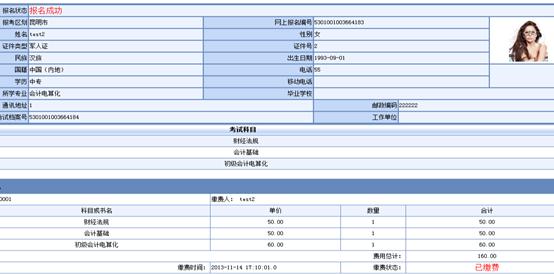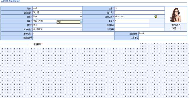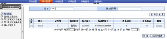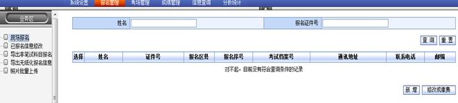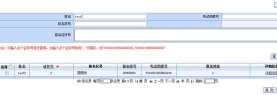 描述:根據地市、區縣、報名日期等組合條件,查詢出已經報名成功的考生列表,