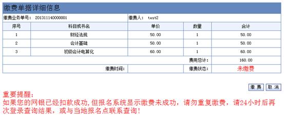 菜單:【信息查詢】》【報名繳費明細查詢】