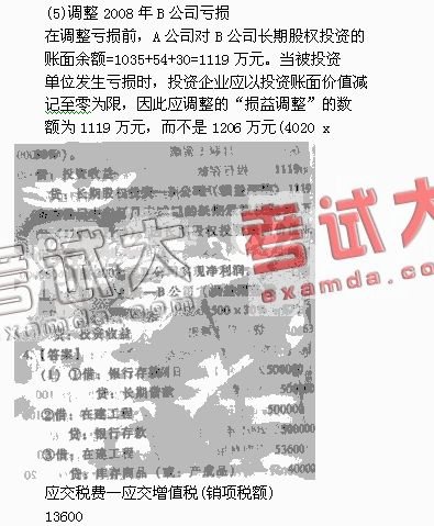 (2)調整2007年B公司實現凈利潤