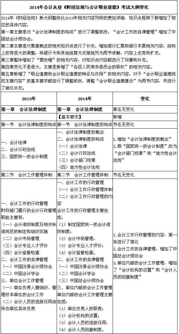 2014會計從業(yè)資格《財經法規(guī)》新舊大綱對比分析