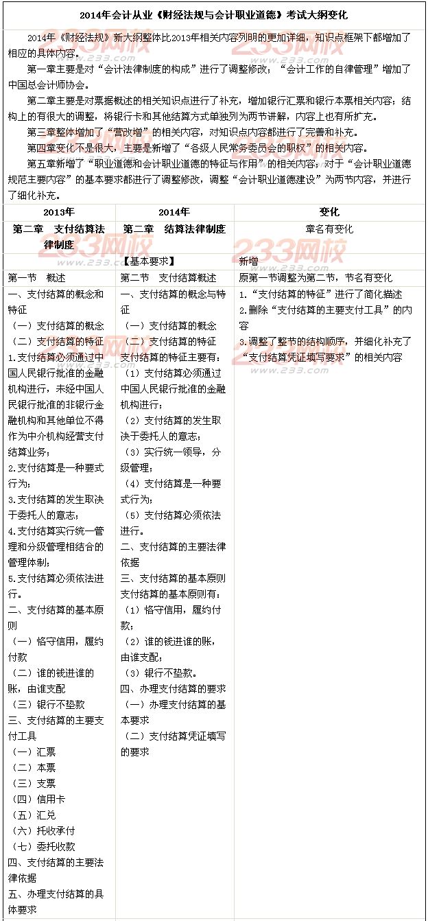 2014會計從業資格《財經法規》新舊大綱對比分析