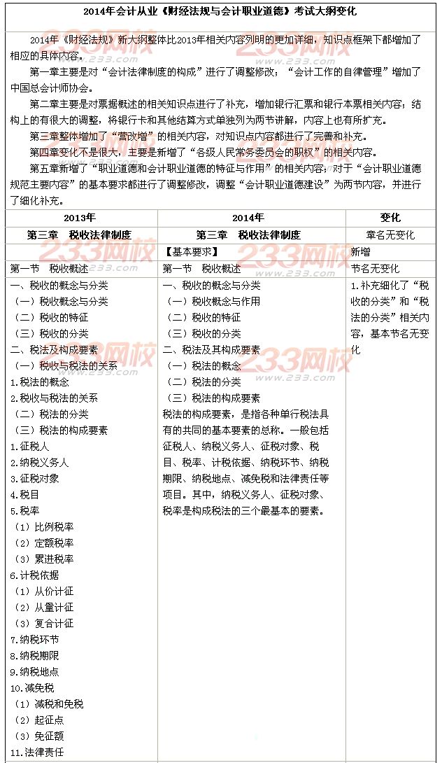 2014會計從業資格《財經法規》新舊大綱對比分析