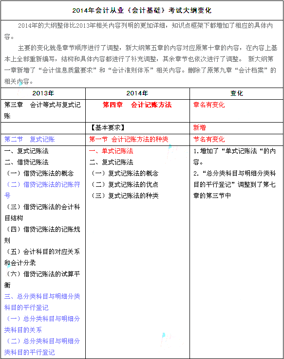 2014會計從業(yè)資格《會計基礎(chǔ)》新舊大綱對比分析