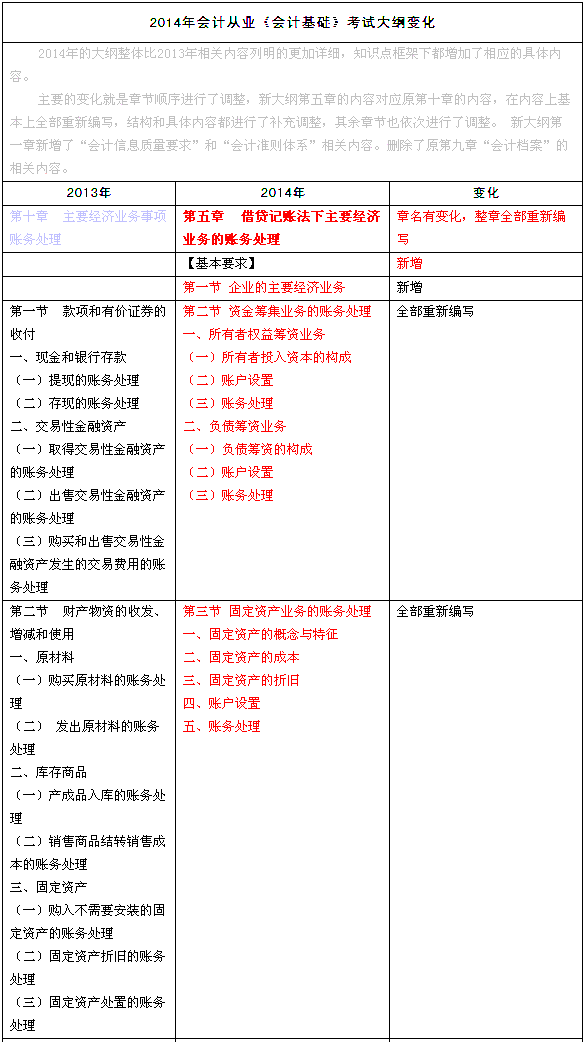 2014會計從業資格《會計基礎》新舊大綱對比分析