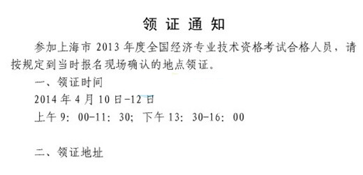 上海2013經濟師合格證書領取時間:4月10日-12日