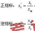 在計(jì)算時(shí)要注意“正指標(biāo)”與“逆指標(biāo)”的區(qū)別。所謂正指標(biāo)是指實(shí)際值越大表現(xiàn)越好的指標(biāo),所謂逆指標(biāo)是指實(shí)際值越小表現(xiàn)越好的指標(biāo)。正指標(biāo)與逆指標(biāo)處理方法為: