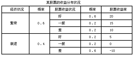 2.假設(shè)某股票的收益分布狀況如表所示。該股票的預(yù)期收益率和標(biāo)準(zhǔn)差分別是( )。![]() |