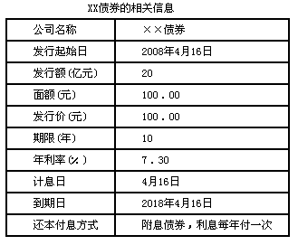 1.如表是某債券的部分信息,已知投資者A在2008年4月16日以5萬元購買了該債券并預計持有到期。則以下說法正確的有( )。![]() |