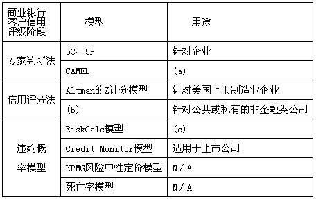 該表是某機構總結的銀行業從業人員資格認證考試輔導教材《風險管理》一書中的所有商業銀行法人客戶信用評級模型(簡要版),N/A表示信息缺失。![]() |
