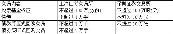 4)國債與債券回購:單筆≥1萬手,或者≥1000萬元;