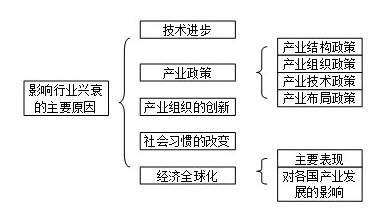 一個行業的興衰受到技術進步、產業政策、產業組織創新、社會習慣改變和經濟全球化等因素影響。
