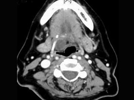 | 患者,女性,28歲,發熱頭痛4天,伴咽旁和頸部劇痛,吞咽困難,吐字不清,查體:扁桃體及咽側壁突向咽腔,但無明顯充血,張口困難,牙關緊閉: |