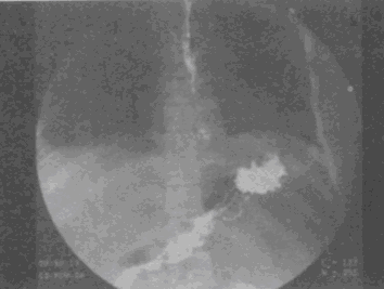 正確答案:C解題思路:食管上段有充盈缺損表現,管腔狹窄,結合病史考慮食管癌可能。