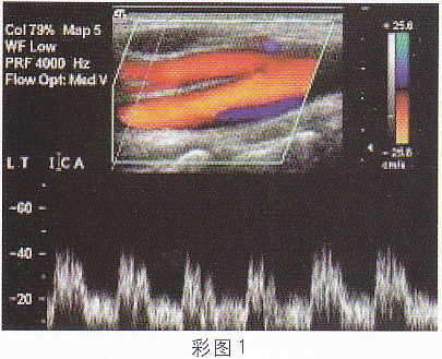 正確答案:B 解題思路:頸內(nèi)動脈頻譜為低速低阻。