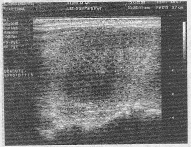 4.患者低熱,咽喉腫痛1周。發現甲狀腺腫大,左側局部壓痛,結合超聲聲像圖,最可能的診斷是