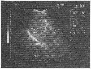5.某患者25歲,高熱,肝區疼痛。肝臟聲像圖表現如圖,結合病史,最可能的診斷是
