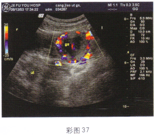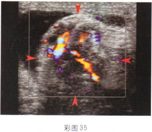3.根據超聲圖像所示(彩圖35),最可能的診斷是
