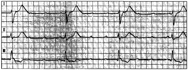 9.該患者心電圖檢查見下圖,圖中第3個QRS波群應考慮為![]() |
