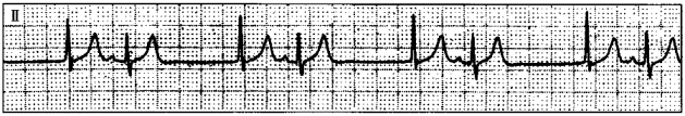 1.患者男性,56歲,胸悶3年。心電圖檢查如下圖所示,圖中第3、4個QRS波群應診斷為![]() |