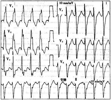 | 6.圖中短陣寬QRS波心動過速應診斷為 |