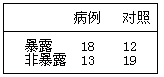 | 1.對(duì)1945~1975年間1000名從事油漆鐳盤的表廠女工,與從事電話員工作的1000名婦女的骨癌發(fā)生情況進(jìn)行對(duì)比,其間從事油漆鐳盤的工人中發(fā)生了20例,電話員中發(fā)生了4例骨癌。從事油漆鐳盤工人發(fā)生骨癌的相對(duì)危險(xiǎn)度是 |