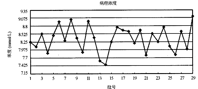 | 8.截至第27批,通過觀察低濃度控制物的測定值發(fā)現(xiàn)可以看出系統(tǒng)違背的質(zhì)量控制規(guī)則是 | |