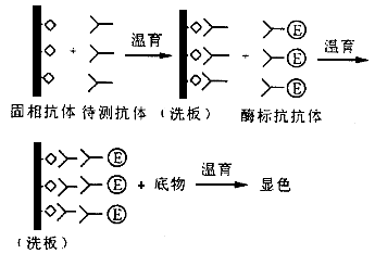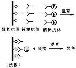 | A.間接法 B.雙抗體夾心法測抗原 C.競爭法測體 D.捕獲法 E.競爭法測抗原 |