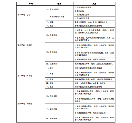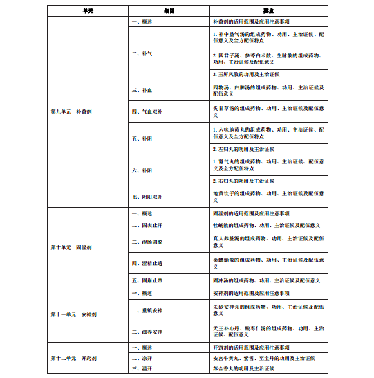 2020年中醫助理醫師《方劑學》考試大綱