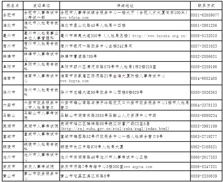 附:各市報名點發(fā)證單位地址及聯(lián)系方式